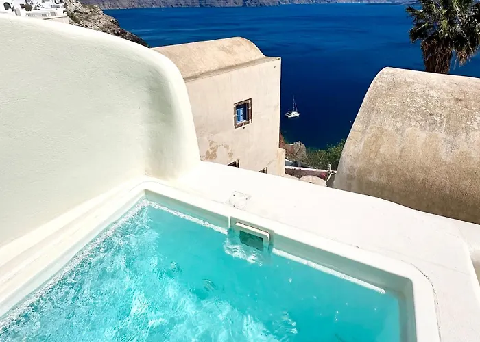 توفّر فيلا Ilia Oia المكونة من 3 غرفة نوم للضيوف تجربة استرخاء مع الحوض الساخن.